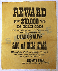 ![]() | Wanted Poster for Sam and Belle Starr A wanted poster for Sam and Belle Starr. |