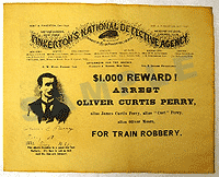 ![]() | Pinkerton's Reward 1882 An 1882 wanted poster for Oliver Curtis Perry for train robbery. |