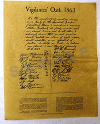 ![]() | Vigilantes' Oath of Montana 1863 Created to establish rules of justice in a land where murder and pillaging ruled. |